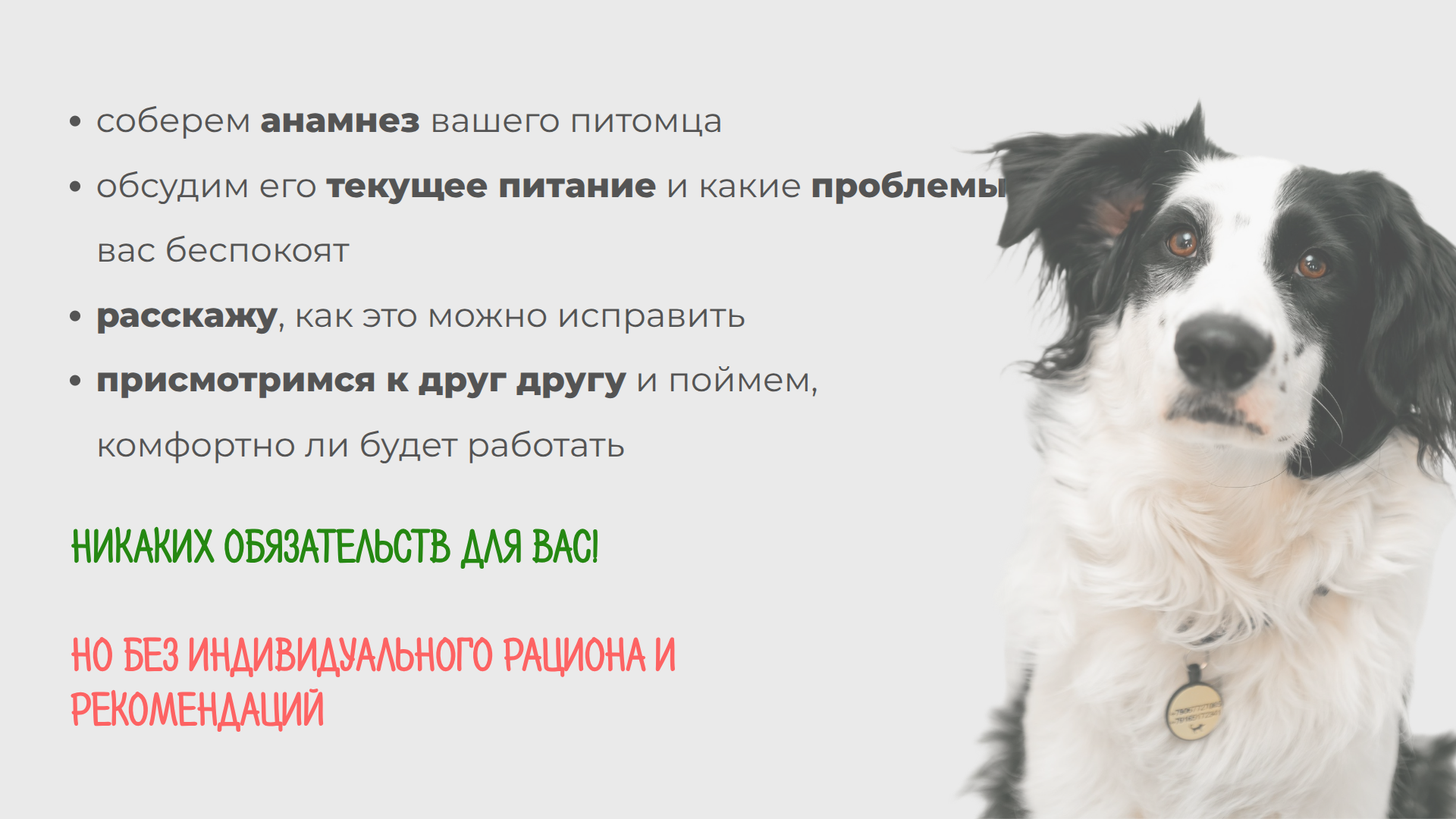 Любой опекун может прийти к диетологу и получить качественный простой рацион, полезный для питомца и ненапряжный для человека. Это не привилегия, а обязанность обеспечить качественную жизнь и питание своей собаке, кошке